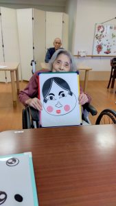 さて、レガート堺東山では、新年を迎えるにあたり、利用者様と一緒に楽しい時間を過ごしました。今年の新春イベントでは、日本の伝統的な遊び「福笑い」を楽しみました。目隠しをして顔のパーツを置いていくシンプルなゲームですが、完成した顔を見てみんなで大笑い!利用者様の笑顔が溢れるひとときとなりました。